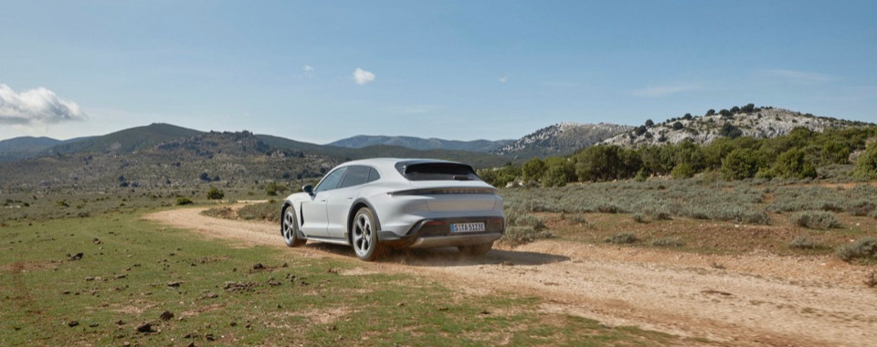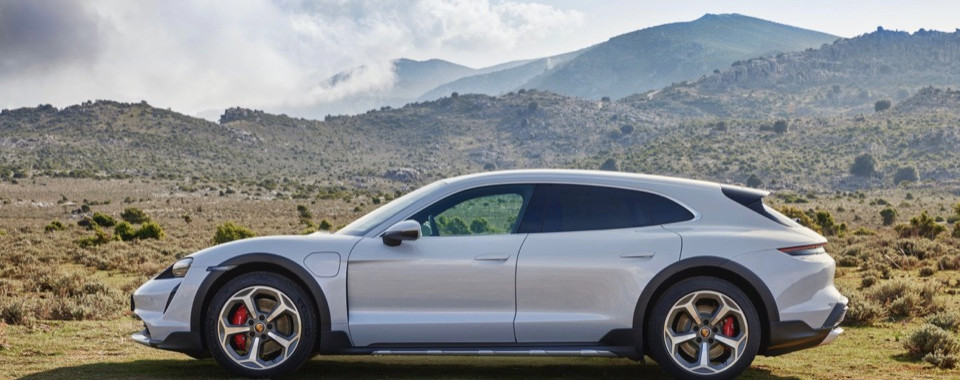 den Taycan 4 Cross Turismo mit 280 kW (380 PS; CO2-Emission kombiniert 0 g/km, Stromverbrauch kombiniert 28,1 kwh/100 km), Overboost-Leistung bei Launch Control 350 kW (476 PS), Beschleunigung 0-100 km/h in 5,1 Sekunden, Höchstgeschwindigkeit 220 km/h, Reichweite (WLTP) 389 – 456 km